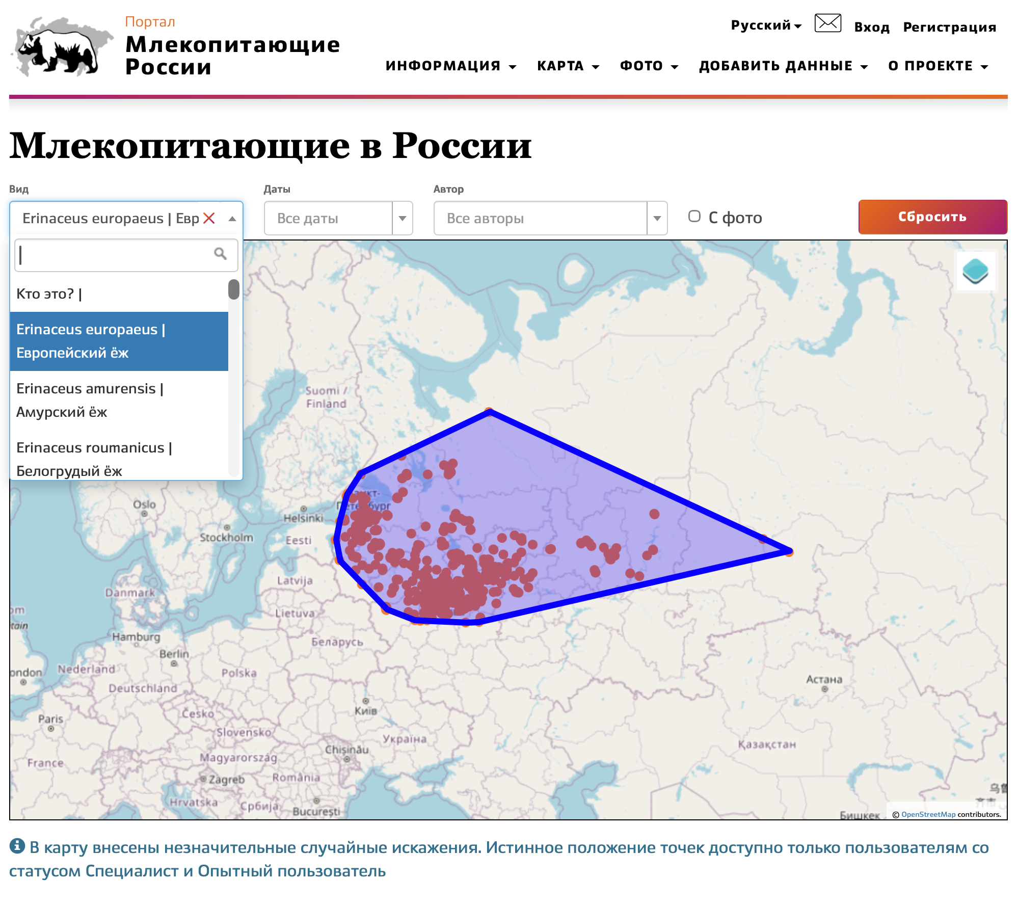 Выпуклая оболочка может быть использована для построения приблизительных ареалов распространения