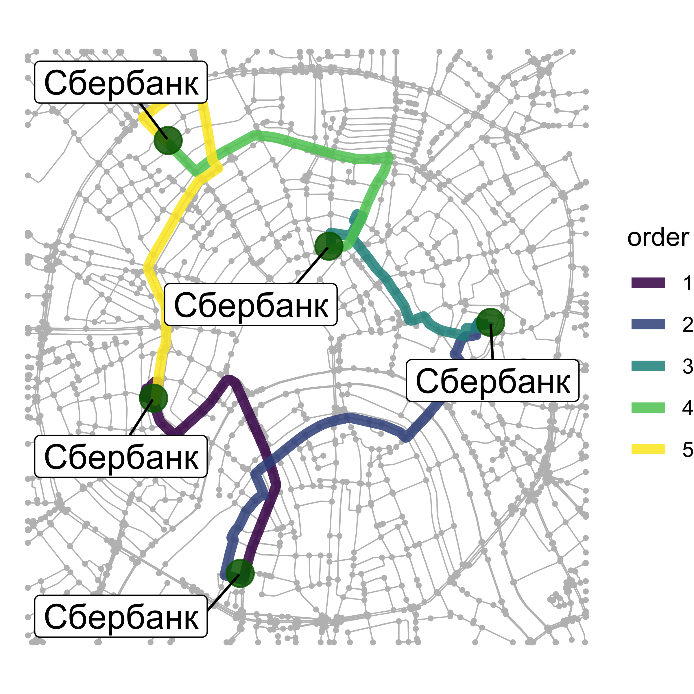 Одна из самых распространенных задач в логистике. Решается в целях оптимизации объезда клиентов, складов и т.д. Вычислительно является сложной задачей.