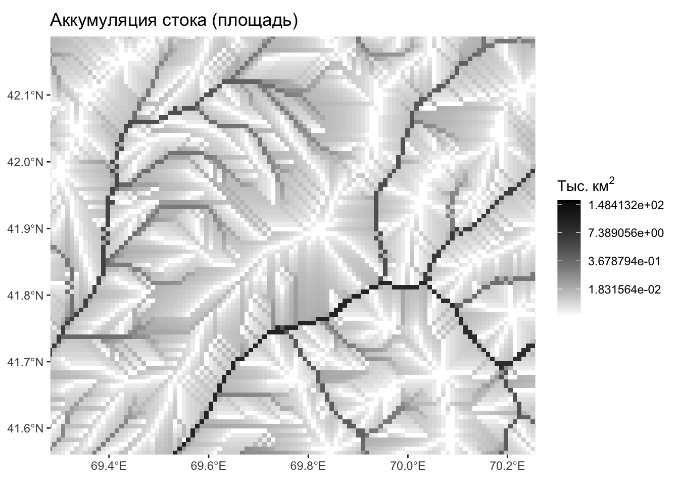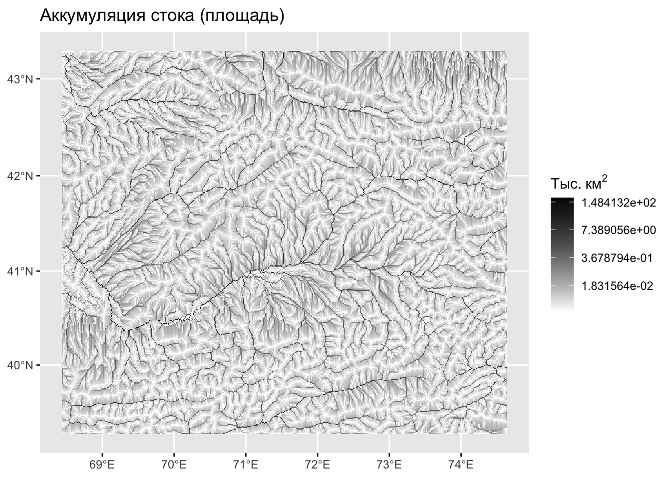 количестве дренируемых ячеек — сток из которых попадает в данный пиксель;