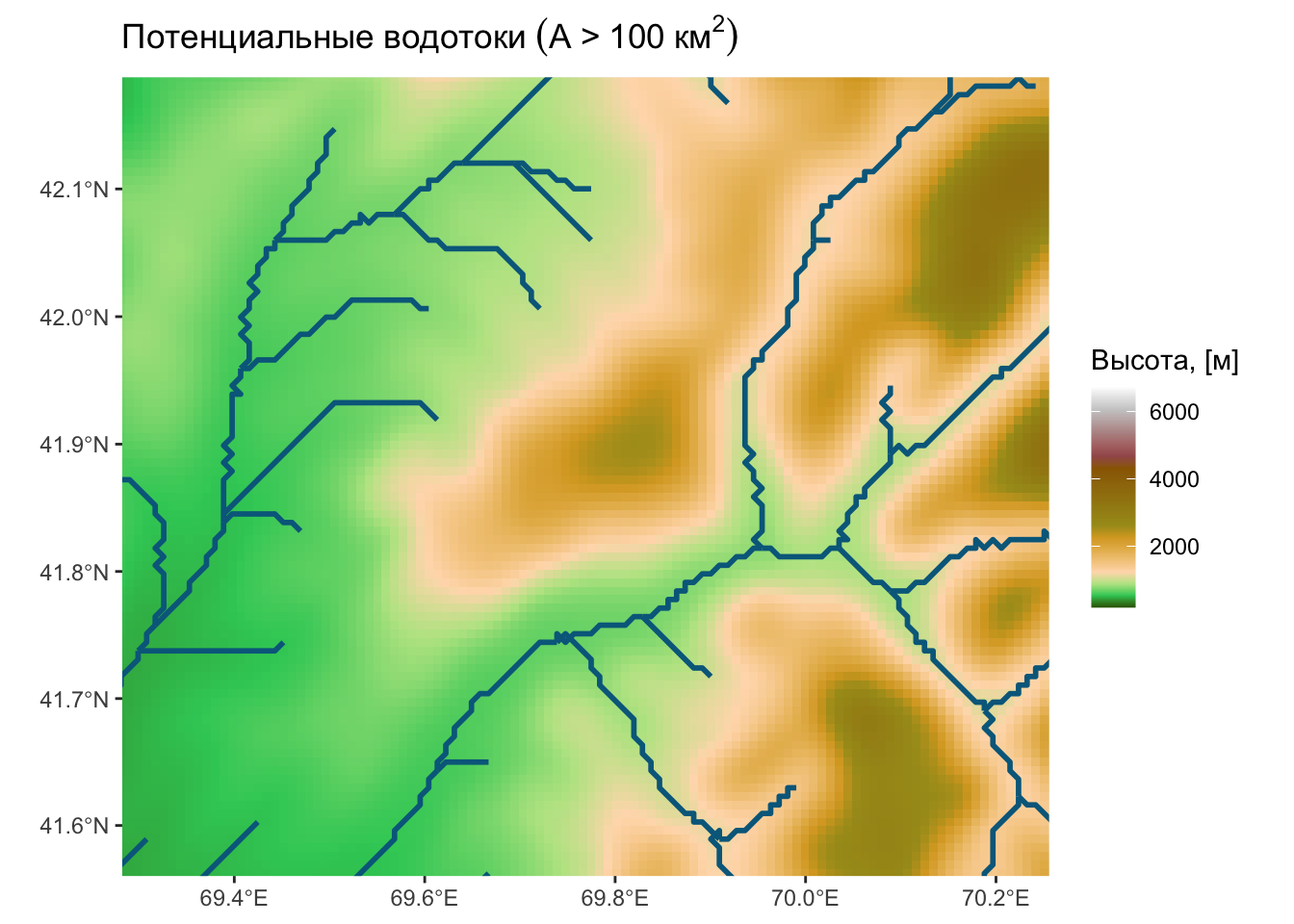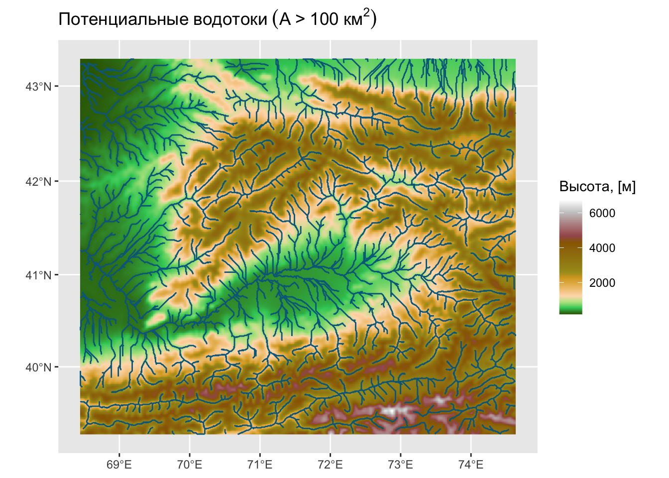 Потенциальные водотоки — линии с высокой аккумуляцией стока.