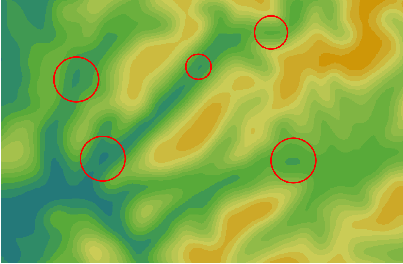 Для гидрологического анализа играют очень важную роль процедуры предварительной подготовки ЦМР, такие как устранение ошибочных замкнутых локальных понижений.