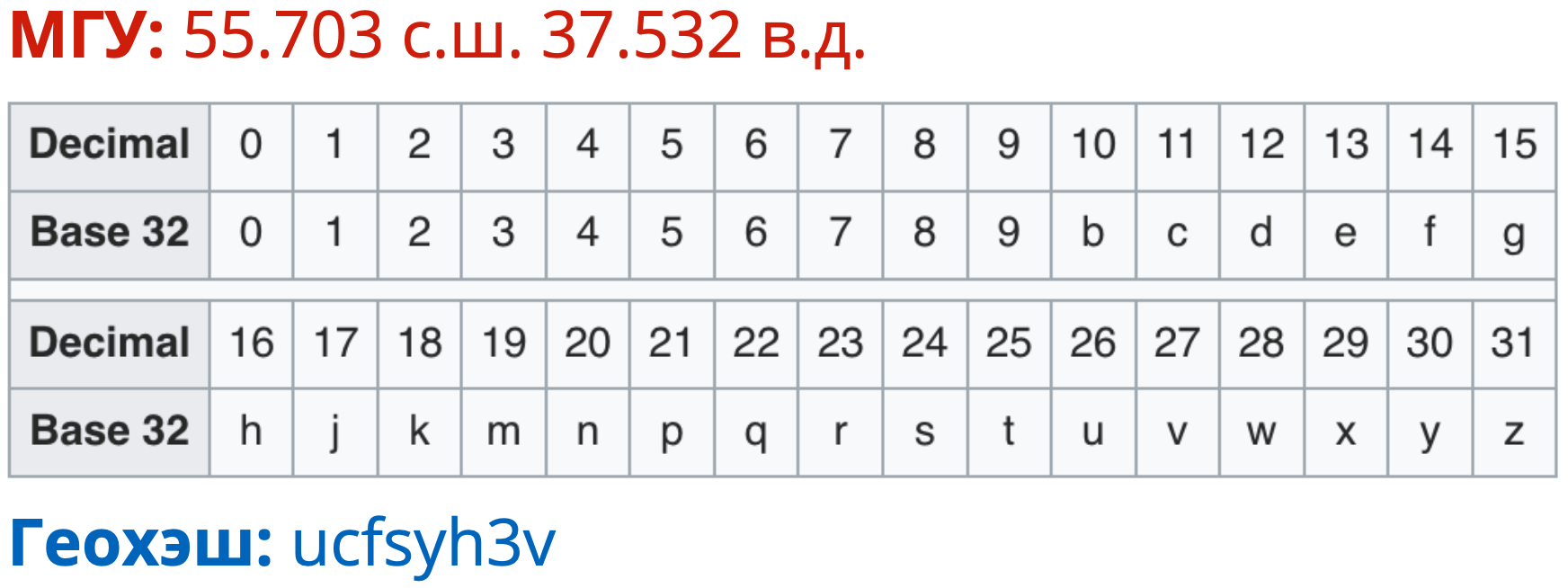 Геохэш — способ кодирования географических координат в виде строки, который часто используется гео-приложениями (в том числе мобильными).