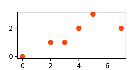 p: MULTIPOINT M(0 0 4, 2 1 1, 3 1 2, 4 2 4, 5 3 5, 7 2 7)