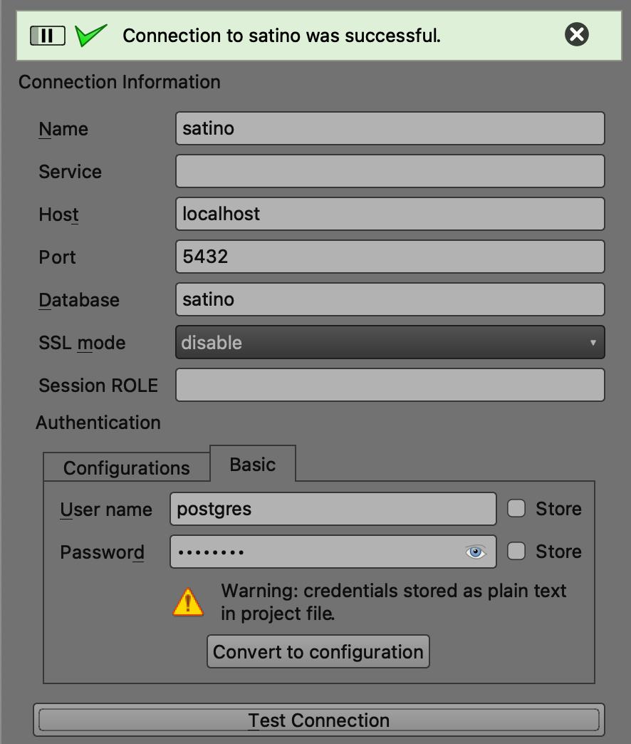 Basic > Test Connection > OK